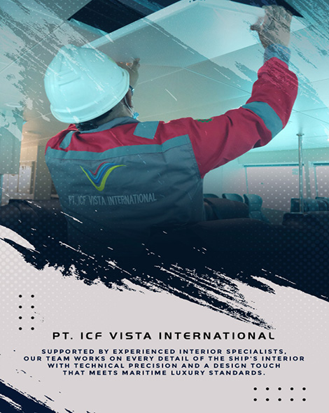 Headquartered in Batam, Indonesia, PT. ICF Vista International specializes in marine interior design and outfitting for ferries, crew vessels, and workboats. We create functional, durable environments that elevate onboard comfort and operational efficiency. Our turnkey solutions cover concept development, space planning, material sourcing, and installation—ensuring every cabin, lounge, and corridor meets international safety standards and design expectations.